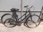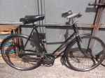 Bike two is a Ladies Triumph with Sturmy Archer 3 speed gears, a 21 inch frame, painted British racing green, metal mud guards and chain guard, Brooks leather saddle and saddle pouch. Metal rod linkages to the brakes and has the serial number NA5279269 on the seat post.