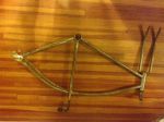 Hi All, Last week I got this old frame for free and need help finding out what the make and model is before I restore it. My bike mechanic friend believes it is older then 1950 American made frame because of the casting of the fork (Iron I believe he mentioned) and the thin seat post tube (I'm not sure how it locks to frame either).