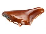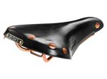 The Team Professional is a classic Brooks saddle created with the needs of the sporting cyclist in mind. This model has been in production for half a century, originating from the old B17 Competition. This saddle is a pleasingly simple design, which truly deserves the description 'timeless classic'. The title Team Professional is embossed on either side just above a precisely hand skived stripe along the side edges, where a little of the glossy leather top surface is removed to reveal the texture and lighter tone of the suede beneath. Large headed copper rivets are hammered by hand, providing the finishing touch.