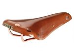 The Team Professional is a classic Brooks saddle created with the needs of the sporting cyclist in mind. This model has been in production for half a century, originating from the old B17 Competition. This saddle is a pleasingly simple design, which truly deserves the description 'timeless classic'. The title Team Professional is embossed on either side just above a precisely hand skived stripe along the side edges, where a little of the glossy leather top surface is removed to reveal the texture and lighter tone of the suede beneath. Large headed copper rivets are hammered by hand, providing the finishing touch.