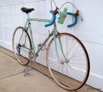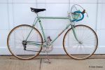 This is a 1957 or thereabouts Bianchi. What model it is is not completely clear. It was refinished in the 60s in Italy and some frame changes were made. The serial number is no longer legible. Components are perhaps original and are period correct.