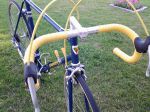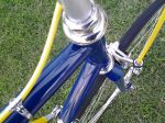 Strawberry Racing Cycles started in 1971 and still are operating out of Portland Oregon, this was their answer of handbuilding and selling Italian style race bikes in the United States, I have swapped and bought many of vintage road and mountain bikes over the years, and when I posted a early Ritchey Mtb bike for sale or swap this showed up, without any decals or stampings, a even swap was done due to the Campagnolo components that were stamped with 75 markings it also had Campy dropouts and that it came with tubular Fiamme wheels with Campy 36H high flange hubs also Cinelli bar and stem. After some cleaning it up I flipped the bike over and with a very bright light saw a faint stamping of SRC 76 on the bb lug , next thing was to send pictures via emails to Andy Newland the owner of Strawberry , he did comfirm that it is and was built in his Portland shop using Prugnet lugs and Reynolds tubing,also working in the shop with Andy were a few other young guns and one of them being Mark DiNucci a fantastic local racer that also built what he raced and that being a SRC Racing Cycle, so the next detailed pictures to be sent were to DiNucci, where it was a final and postive ID of being built by DiNucci himself while working for SRC in the mid 70's .Not long after this DiNucci went off on his own and branded his own name on his builds