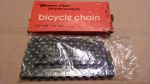 Came across this bicycle chain in an attic. I have come across a mint condition, replacement chain (item code F5511) which appears to be for a 1967 era boys "Eliminator" Buzz Bike, or same era girls' "Miss Buzz Bike". According to "Boys Life" magazine, Volume 57, #9, 1967, the MSRP was $0.95, and in volume 58, #9, Sepetember 1967 issue, the price was raised to $1.07. When you adjust for inflation from those years to 2016, the retail price would be about $7.41. Those are the ONLY direct and specific references to this chain I can find, and they don't even contain a picture to verify it's the same product as mine. This gentleman here on EBay has a similar chain, however mine has red packaging and variation of the part number. I will attach a modestly high resolution photo for you to evaluate. Long story short, I do not want to let go of this thing until I fully understand the value of what I have. I have searched every corner of the internet, and that EBay listing, and my own chain in my possession at the moment, seem to be the only two antique bike chains of this product number that I can verify that even exist, making me feel like I have some kind of rare gem. Mine is in significantly better condition; not only is my exterior box less damaged, but the seal of the plastic bag containing the chain is still airtight. I don't expect a definitive and final answer, but you guys clearly have an enormous wealth of knowledge compared to myself in regards to these bikes. I just need guidance and advice, no matter how insignificant it may seem. Any help greatly appreciated. Thanks in advance.
