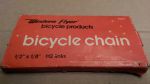 Came across this bicycle chain in an attic. I have come across a mint condition, replacement chain (item code F5511) which appears to be for a 1967 era boys "Eliminator" Buzz Bike, or same era girls' "Miss Buzz Bike". According to "Boys Life" magazine, Volume 57, #9, 1967, the MSRP was $0.95, and in volume 58, #9, Sepetember 1967 issue, the price was raised to $1.07. When you adjust for inflation from those years to 2016, the retail price would be about $7.41. Those are the ONLY direct and specific references to this chain I can find, and they don't even contain a picture to verify it's the same product as mine. This gentleman here on EBay has a similar chain, however mine has red packaging and variation of the part number. I will attach a modestly high resolution photo for you to evaluate. Long story short, I do not want to let go of this thing until I fully understand the value of what I have. I have searched every corner of the internet, and that EBay listing, and my own chain in my possession at the moment, seem to be the only two antique bike chains of this product number that I can verify that even exist, making me feel like I have some kind of rare gem. Mine is in significantly better condition; not only is my exterior box less damaged, but the seal of the plastic bag containing the chain is still airtight. I don't expect a definitive and final answer, but you guys clearly have an enormous wealth of knowledge compared to myself in regards to these bikes. I just need guidance and advice, no matter how insignificant it may seem. Any help greatly appreciated. Thanks in advance.